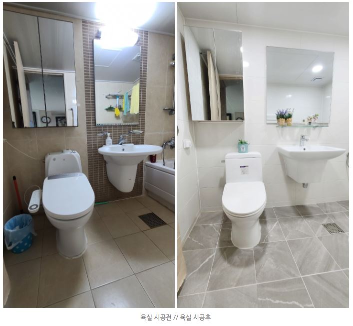 경산시 옥곡동 한일유앤아이아파트 104동 81.9㎡(24평)욕실 리모델링 운영자 (182.♡.157.198) 0 196 2022.08.25 11:24 안녕하세요? 대림 바스&키친 경산옥산점입니다.경산시 옥곡동 한일유앤아이아파트 104동 81.9㎡(24평)욕실 리모델링입니다^^
