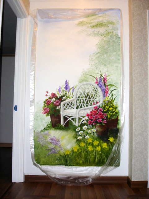 현관문을 열고 들어서는 정면 벽면에 테두리를 두르고 그림을 넣었습니다.