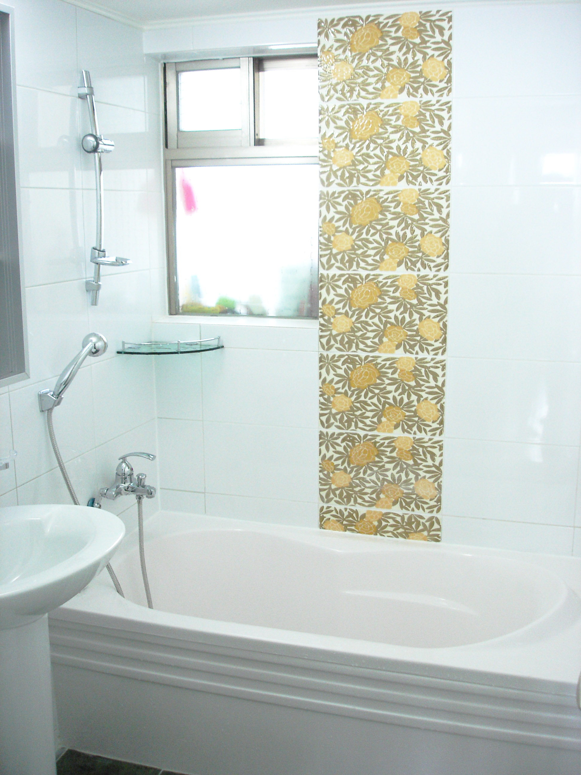 욕조를 넣고 그위에 포인트 타일을 넣었습니다.