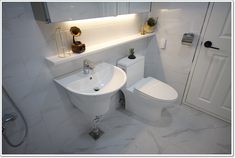 욕실장 밑 조명 설치 &화이트 대리석 선반