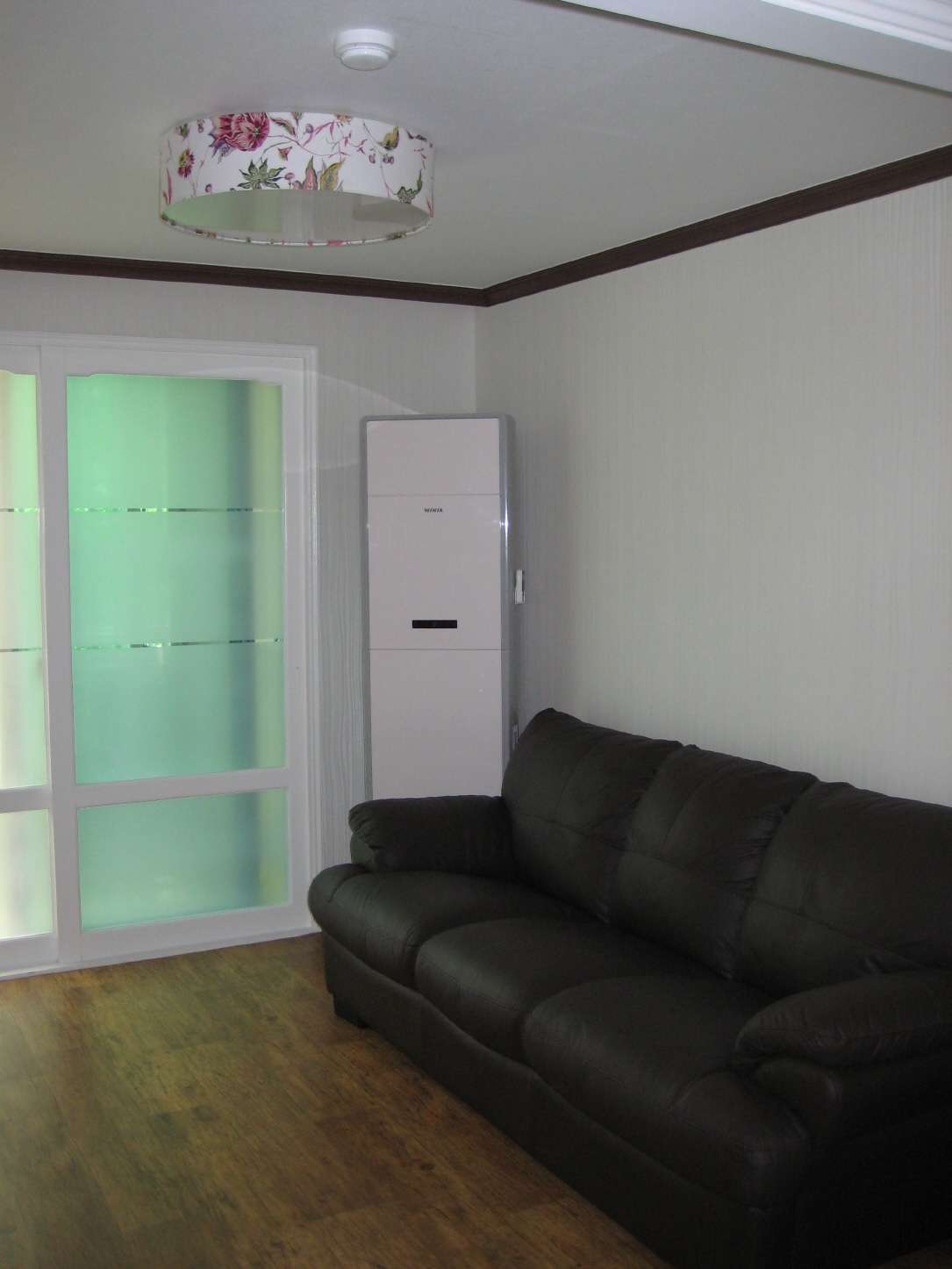 베란다로 나가는 미닫이문을 문틀만 도색하고 색유리로 교체...