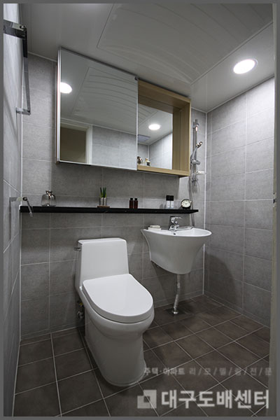 공사내용은 거실욕실은 치마형원피스양변기,반다리 일체형세면대