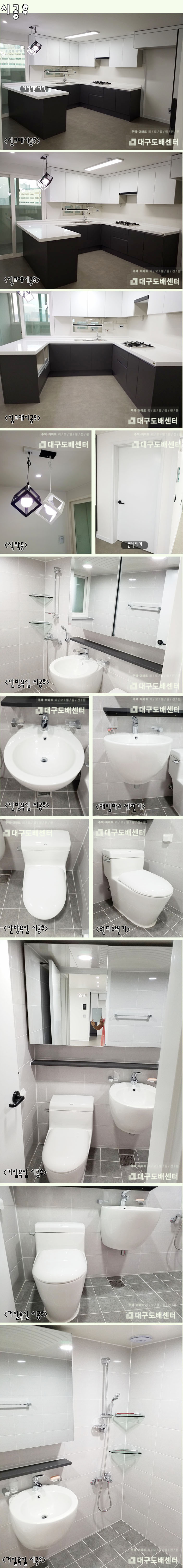 경산 백천초록마을 부영아파트(106.39㎡) 32평 리모델링 공사(싱크대, 욕실) 운영자 (118.♡.249.58) 30평형대 0 2660 2017.09.13 14:47 경산 백천초록마을 부영아파트 32평 리모델링 공사실크도배, 거실확장, 작은방 확장, 장판공사도색, 싱크대, 신발장, 거실욕실, 안방욕실LED조명, 스위치, 콘센트, 현관타일, 베란다타일 시공3연동 중문시공, 터닝도어 시공을 하였습니다.