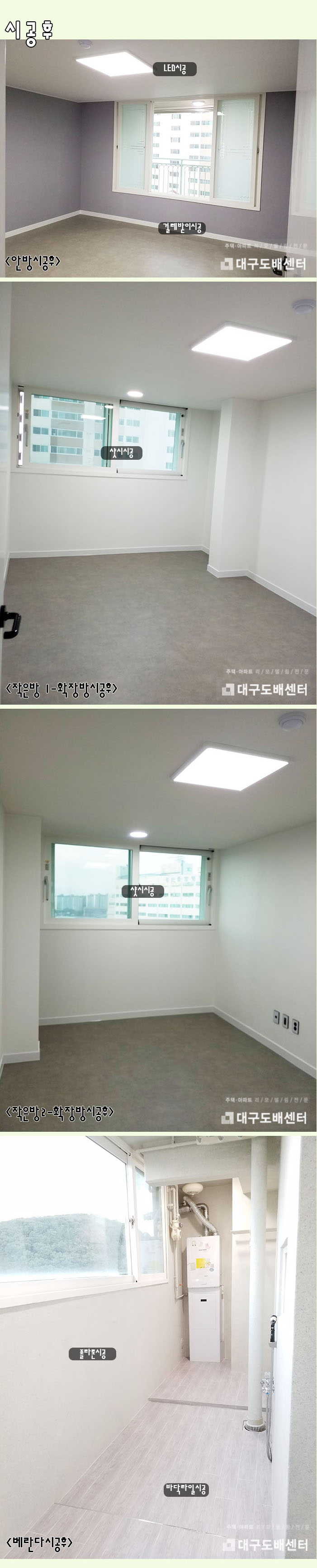 경산 백천초록마을 부영아파트(106.39㎡) 32평 리모델링 공사(안방, 작은방,베란다) 운영자 (118.♡.249.58) 30평형대 0 2486 2017.09.13 18:14 경산 백천초록마을 부영아파트 32평 리모델링 공사실크도배, 거실확장, 작은방 확장, 장판공사도색, 싱크대, 신발장, 거실욕실, 안방욕실LED조명, 스위치, 콘센트, 현관타일, 베란다타일 시공3연동 중문시공, 터닝도어 시공을 하였습니다.