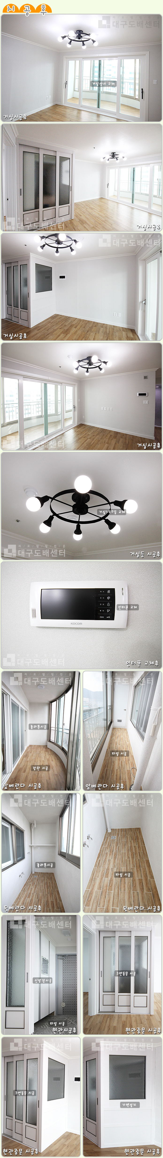 경산시 옥산동 평광신화아파트 103동 79㎡(24평) 리모델링공사 ① 거실, 베란다 운영자 (220.♡.32.32) 20평형대 0 3452 2017.04.14 18:39 거실, 현관, 베란다의 리모델링 공사 후 스케치입니다.------------------------------------------------------------공사내용은 실크도배, 장판 공사, LED조명공사, 인터폰, 감지기, 디지털키교체,거실샷시교체, 3연동중문과 가벽설치, 문턱제거, 베란다 타일, 졸라톤 시공등을 했습니다.
