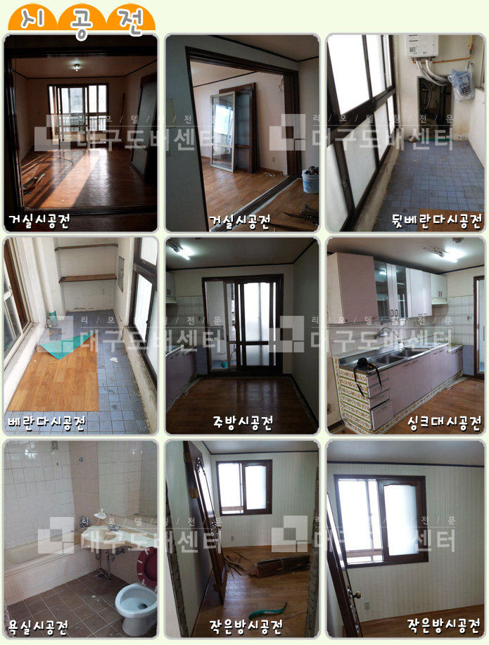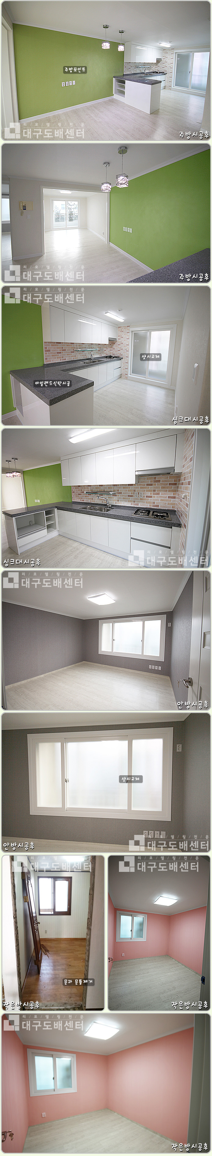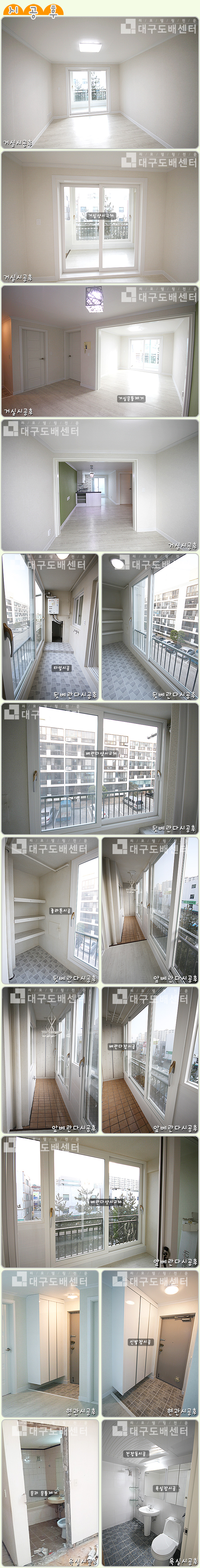 대구시 동구 방촌동 서한2차 아파트 201동 79㎡(24평) 리모델링공사 운영자 (117.♡.159.156) 20평형대 0 5172 2013.03.23 23:42 리모델링 공사 후 스케치입니다.------------------------------------------------------- 전체 샷시공사, 실크도배, 장판공사, 싱크대, 아일랜드 식탁, 욕실공사,몰딩공사, 문과 문틀교체, 도색공사, 앞뒤 베란다 타일공사, 신발장, 베란다장, 세탁기 돋음공사, 거실과 주방사이 문틀 제거공사등을 했습니다. 진정한 올수리라고 봐야겠죠 ^^