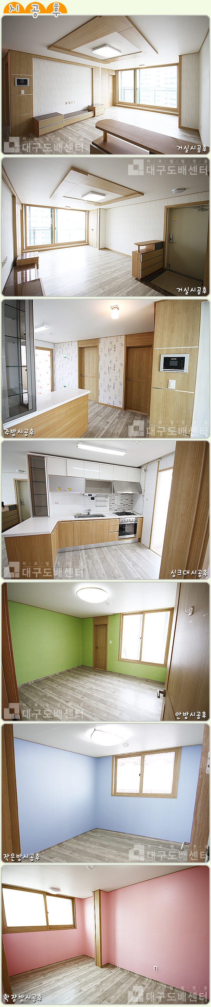 경산시 옥곡동 부영3차 아파트 24평(79㎡) 리모델링공사 운영자 (59.♡.140.223) 20평형대 0 5276 2012.08.24 10:12 리모델링 공사 후 스케치입니다.----------------------------------------------------- 각각 실크도배 및 장판공사를 하였습니다.