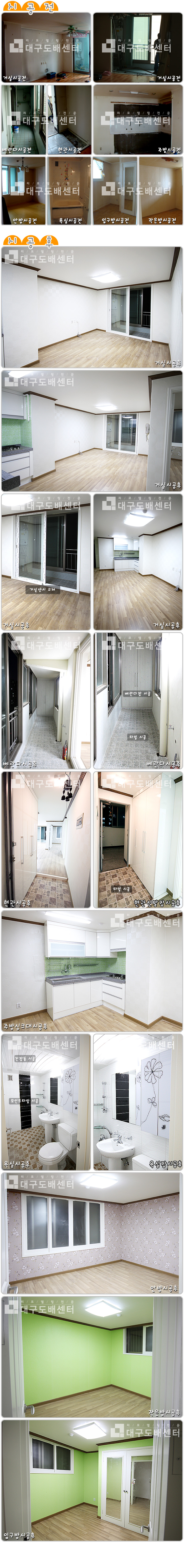 대구 수성구 신매동 창신신화대백아파트 205동 25평(82㎡) 리모델링공사 운영자 (118.♡.244.101) 20평형대 0 5205 2011.08.28 22:57 리모델링 시공후 스케치입니다. ------------------------------------------------- 도색, 졸라톤, 실크도배, 마루시공, 욕실공사, 싱크대, 신발장, 몰딩공사, 샷시공사, 문턱제거, 조명공사, 스위치콘센트, 베란다타일공사, 창고장, 손잡이교체등을 했습니다.