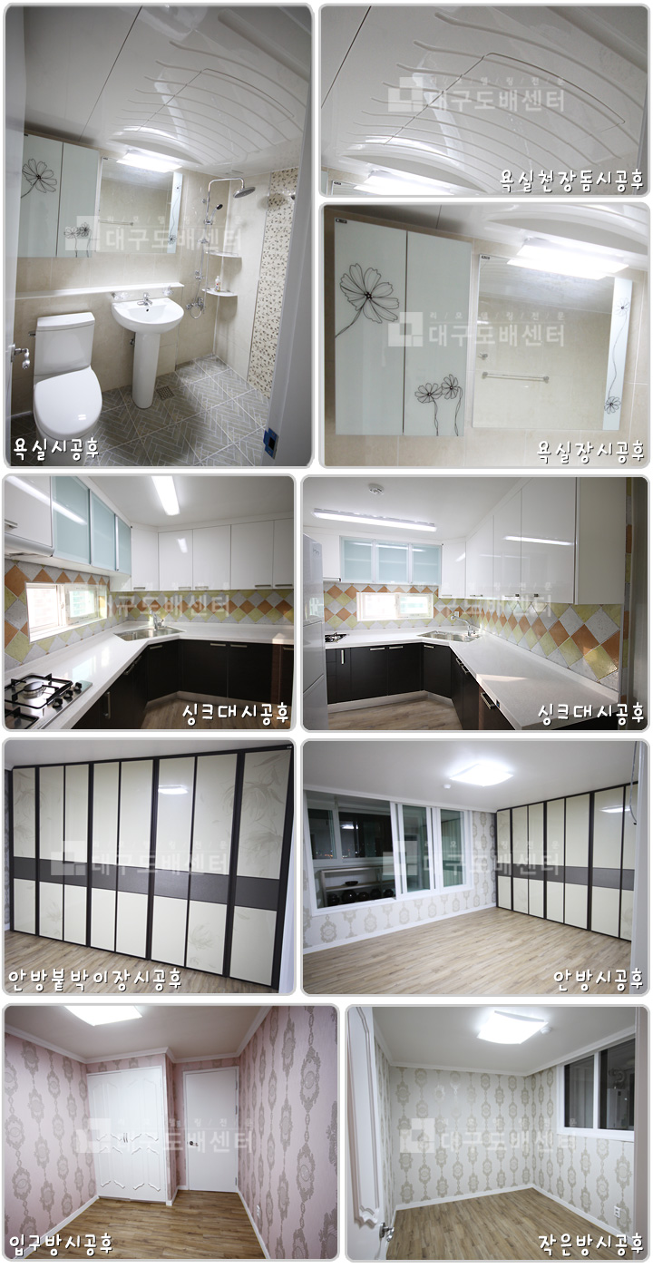 경산시 정평동 현대아파트 32평(102㎡) 아파트 리모델링공사 운영자 (175.♡.134.151) 30평형대 0 5824 2010.08.03 18:23 리모델링 시공후 공사스케치입니다. -------------------------------- 앞뒤베란다 , 안방, 작은방 샷시교체, 도색, 도배, 장판, 몰딩,걸레받이, 천정등박스 목공사 시공했습니다. 욕실공사, 싱크대 공사, 안방붙박이장, 신발장, 창고장, 조명, 스위치, 콘센트, 인터폰 교체 했습니다. 오랫동안 살던 집을 큰맘 먹고 이삿짐센타에 짐맡기고 리모델링 했습니다. 공사기간 동안 주인분도 고생하셨지만 리모델링 된 모습에 무척 만족 하셨습니다.