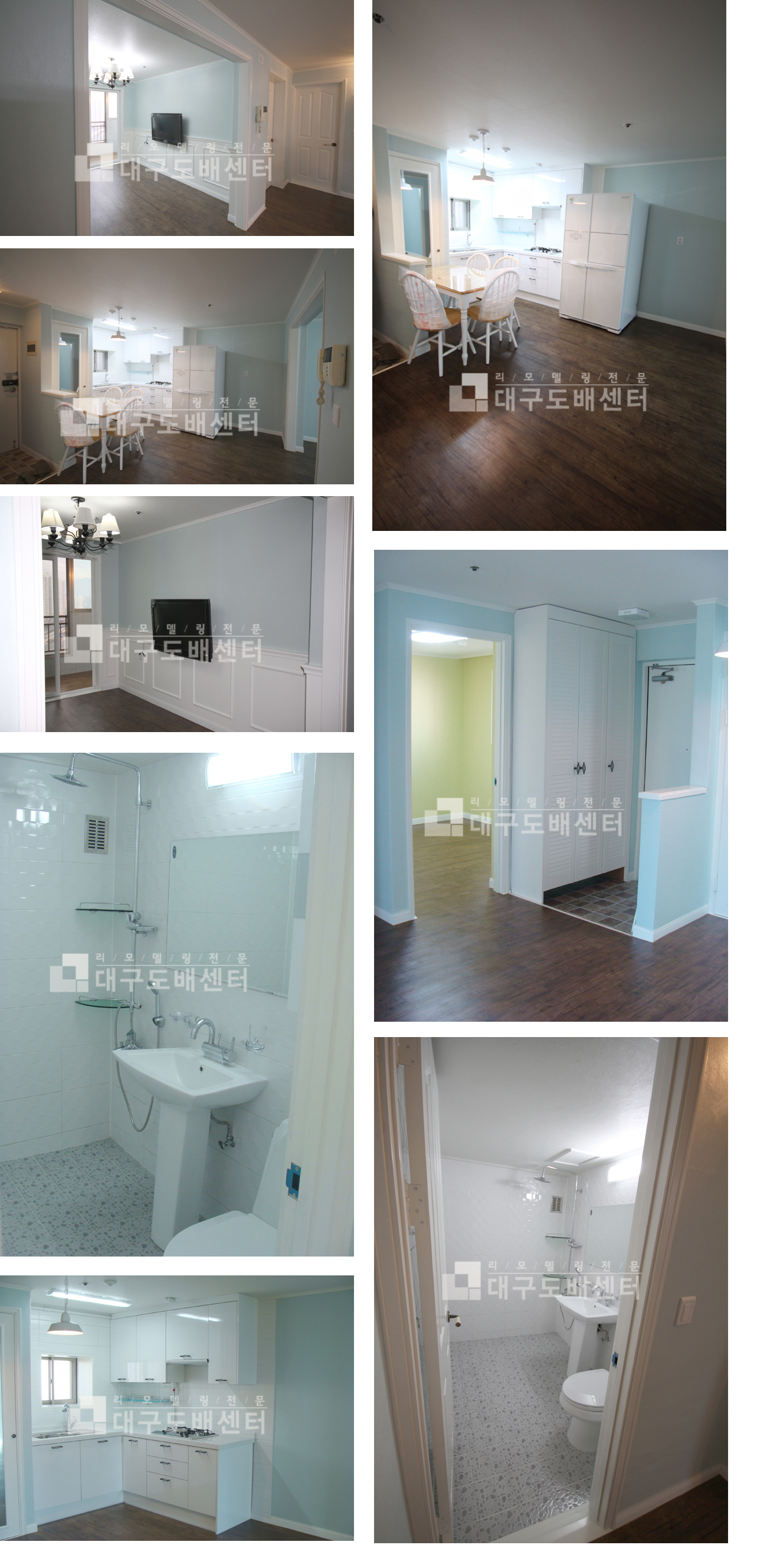 대구시 동구 신천동 푸른우방타운 25평 아파트 리모델링 공사 운영자 (121.♡.95.186) 20평형대 0 4874 2010.02.18 17:49 도색, 문턱제거, 실크도배, 데코타일, 웨인스코팅, 걸레받이시공, 싱크대, 욕실공사, 조명, 스위치콘센트, 신발장, 현관타일, 디지탈키등을 설치하였습니다.