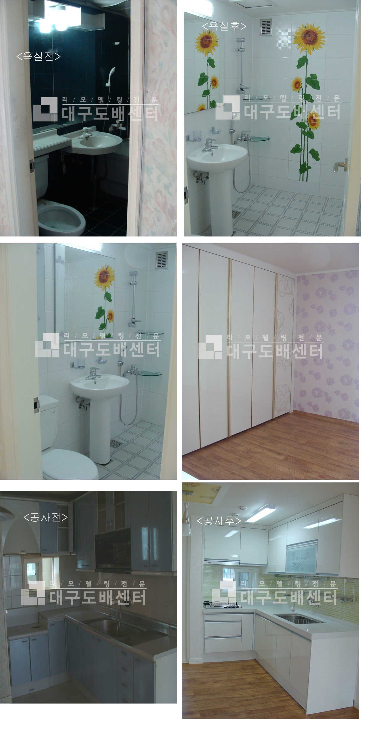경산시 옥산동 평광신화아파트 23평 리모델링공사(욕실,싱크대) 운영자 (121.♡.95.124) 20평형대 0 4506 2009.12.23 16:01 경산시 평광신화아파트 23평입니다. 욕실은 욕조를 제거하고 포인트타일을 시공했습니다. 싱크대는 인조대리석상판에 쿡탑을 매입했습니다.