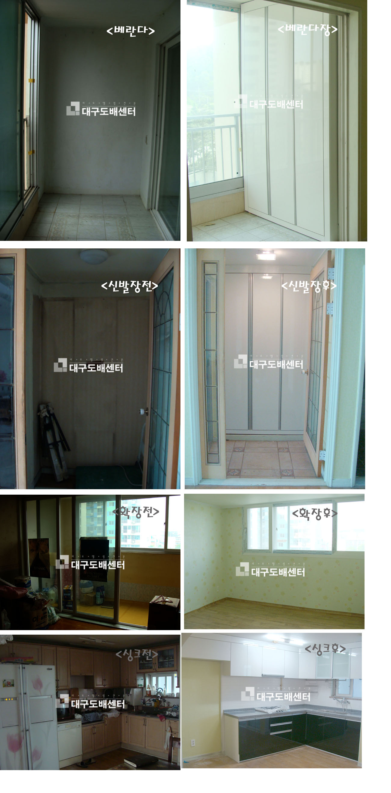 대구시 북구 침산동 화성타운 33평 리모델링 운영자 (121.♡.95.124) 30평형대 0 4816 2009.06.25 18:21 도배, 장판, 작은방확장, 신발장, 베란다장, 싱크대, 조명공사등을 했습니다.