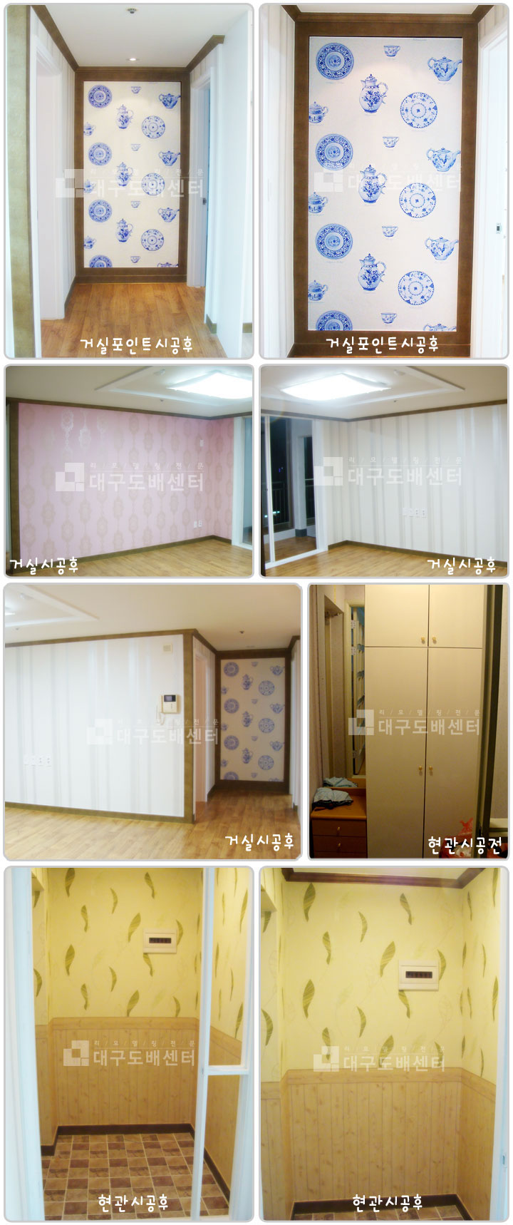 경산시 정평동 한솔2차아파트 32평 리모델링 (거실공사) 운영자 (119.♡.42.193) 30평형대 0 4323 2009.10.29 15:16 <현관 및 거실 공사 스케치입니다.> 현관에 포인트 벽지 시공과 현관타일 새로 시공했습니다. 안방과 작은방사이 몰딩을 두르고 파란색 접시 그림의 포인트 벽지를 시공했습니다. 금색 몰딩과 코너기둥 작업했습니다.