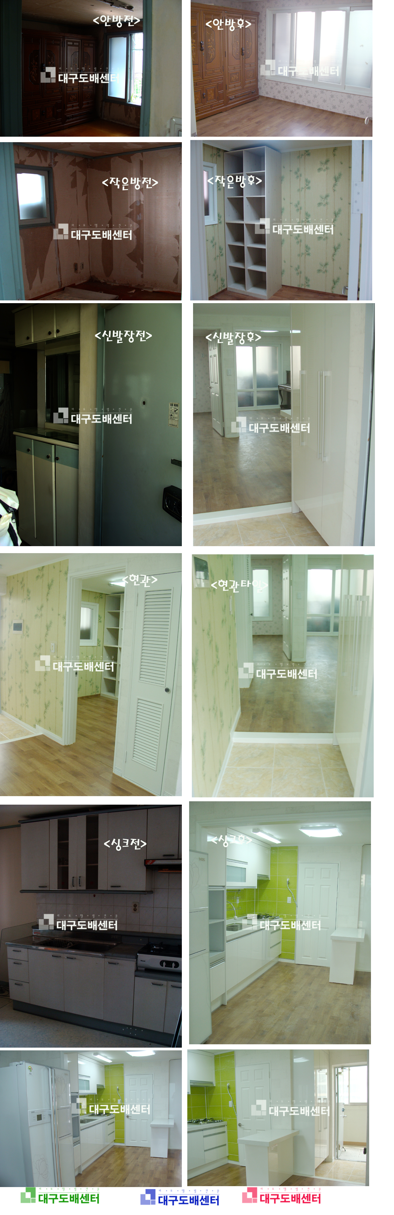 경산시 옥산동 개나리 아파트 22평 리모델링(69제곱m) 운영자 (121.♡.95.124) 20평형대 0 5545 2009.05.27 20:29 도색, 도배, 장판, 조명, 욕실, 싱크 ,턱제거, 신발장, 현관타일등을 했습니다.