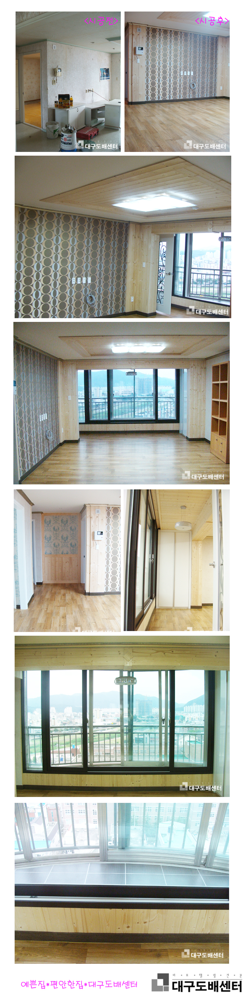 경산시 옥산동 평광신화 아파트 32평형 거실 리모델링 운영자 (121.♡.95.124) 30평형대 0 4546 2008.10.09 20:16 평광신화 아파트 32평 입니다. 거실확장, 작은방확장, 몰딩, 아트월, 도색,실크도배, 바닥재, 싱크, 욕실, 조명, 스위치콘센트, 신발장, 붙박이장 등을 하셨습니다.