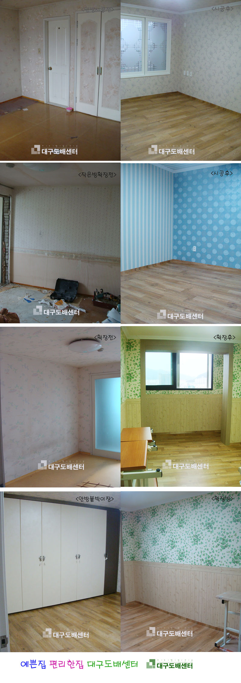 경산시 옥산동 평광신화아파트 32평 안방,작은방, 확장방 운영자 (121.♡.95.124) 30평형대 0 4498 2008.10.30 18:29 안방과 작은방 두개는 확장했습니다. 안방은 붙박이장을 짜넣고 하나는 학생방으로 사용하고 확장방 하나는 공부방으로 사용 할려고 합니다.