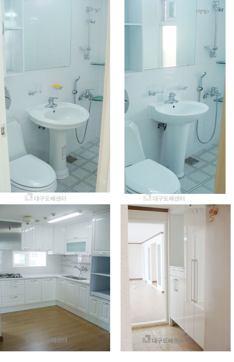 경산시 옥산동 평광신화아파트 42평형 욕실 리모델링 운영자 (121.♡.95.124) 40-50평형대 0 3557 2008.09.16 19:54 거실욕실과 안방욕실 두개 모두 리모델링 했습니다. 소비자분은 정년퇴임한 선생님 이신데 집에 어른만 세분 사시는데전체적으로 깔끔하고, 용량이 큰 세면기를 주문하셨습니다 . 오랜 주택생활끝에 장만한 아파트라서 겉보기에 예쁘기 보다는 주인분에게 편하고 실속있는 형태로 시공 되었습니다.