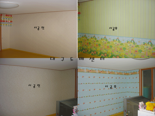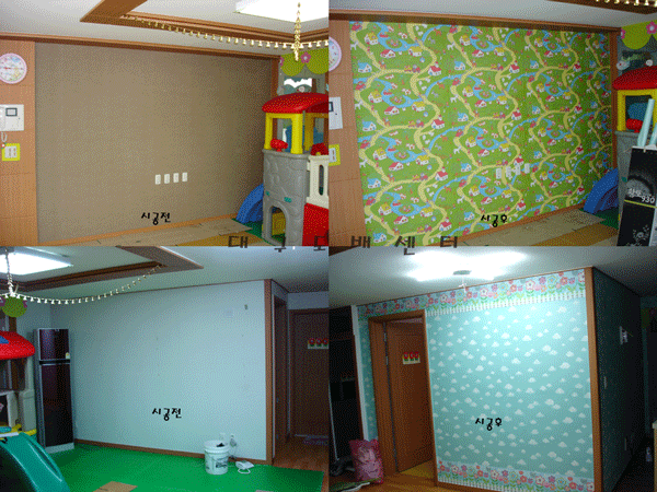 어린이집의 다양한 벽지들 운영자 (121.♡.95.83) 일반 0 3158 2008.01.18 00:53 어린아이들이 많은 어린이집에서는 아이들 동심에 맞게 여러가지 알록달록한 벽지들을 시공합니다. 너무 무난한 벽지들로만 되어있던 어린이집에 여러가지 색깔을 넣어 보았습니다.