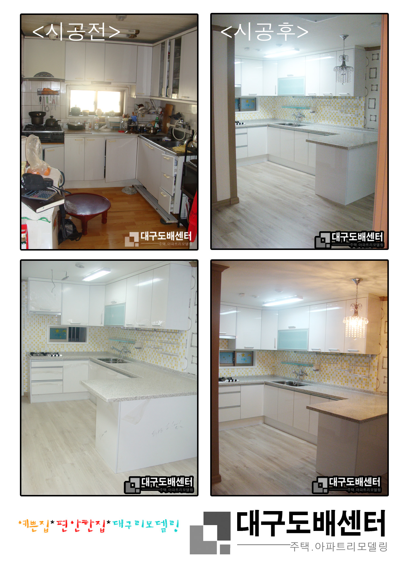 대구시 수성구 신매동 두성아파트 24평(82제곱m) 싱크대 리모델링 운영자 (121.♡.95.72) 20평형대 0 4415 2008.03.17 16:22 대구시 수성구 신매동 두성아파트 24평아파트입니다. 소비자분이 싱크공간이 부족하다고 해서 아일랜드 식탁을 짜넣어 수납과 식탁을 해결했습니다.
