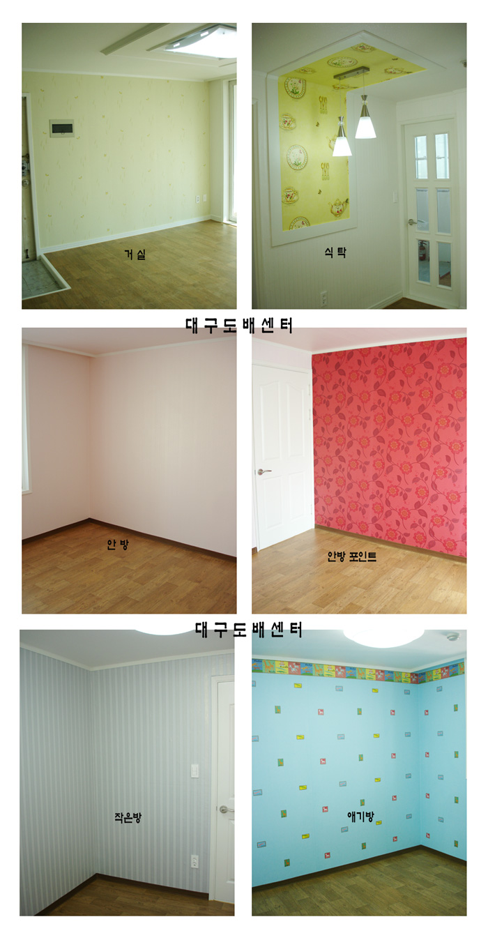 경산시 옥산동 평광신화아파트 24평 리모델링 운영자 (121.♡.95.145) 20평형대 0 4691 2007.11.10 14:52 계절이 가을이라서 요즘 주로 신혼부부가 가장 많이 오십니다. 너무 튀지도 않고 너무 밋밋하지 않게 하는것이 목표인데 쉽지는 않네요. 거실소파쪽에 은은한 나비벽지와 안방한면에 빨강포인트벽지로 나름 신경썼구요. 가장 신경쓴 부분은 식탁을 놓는 공간에 목작업을 해서 식탁등을 예쁘게 달아 보았습니다.,