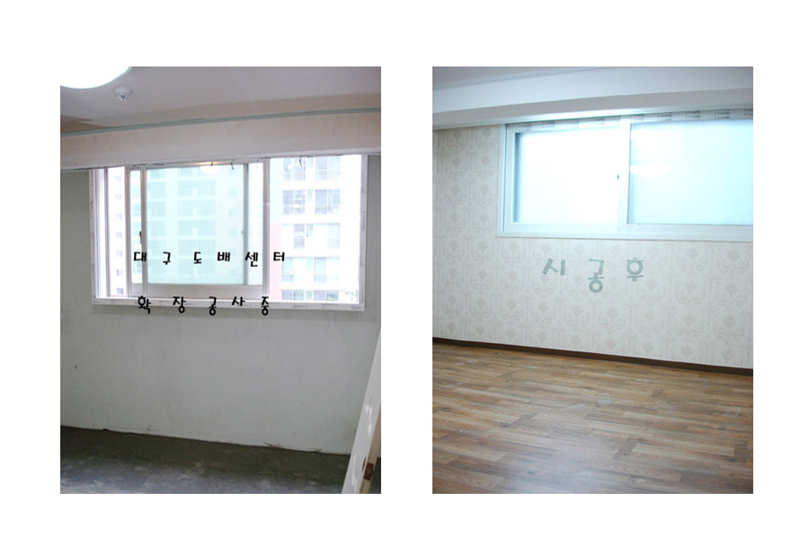 작은방 안에 붙박이장을 철거하고 목작업,보일러공사,샷시등이 들어갔다.