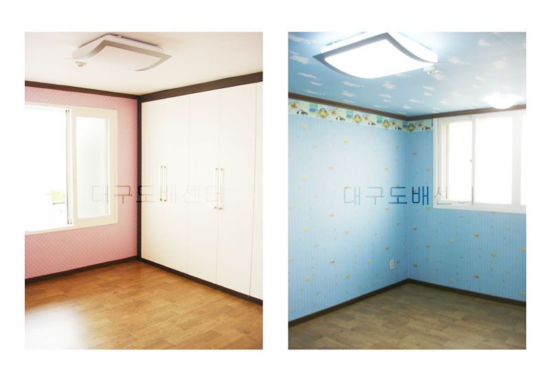 초원장미아파트24평 안방과 작은방(2) 운영자 (121.♡.95.210) 20평형대 0 4453 2007.01.25 17:13 안방은 보라색벽지를 바르고 붙박이장을 설치했습니다. 작은방은 남자아이가 차를 좋아해서 파란색 벽지에 카띠를 둘렀습니다.