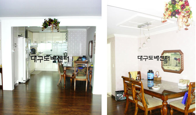 거실 확장, 몰딩, 목공사, 도배, 마루 공사를 했습니다.