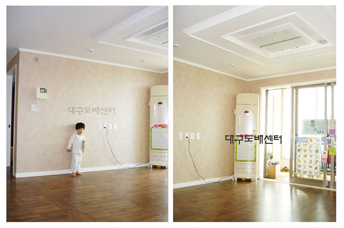 평광 신화 102동 32평 아파트(2) 운영자 (125.♡.29.214) 30평형대 0 4758 2006.05.22 22:25 거실에 요즘 유행하는 무늬있는 실크 벽지를 바르고, 바닥은 대청마루 스타일의 바닥재를 깔았습니다.