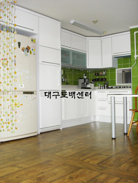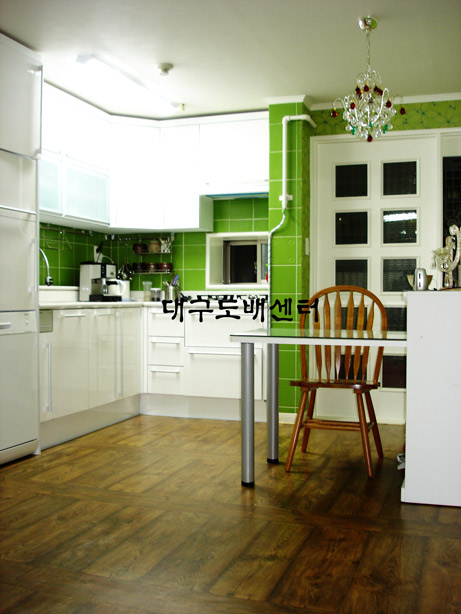 색깔이 있는 주방(1) -(평광신화 아파트) 32평 운영자 (218.♡.0.109) 30평형대 0 4696 2006.06.10 15:34 주방에 그린색 타일과 화이트 씽크를 메치 했답니다. 환하고 넓어 보이는데는 역시 화이트가 최고랍니다.