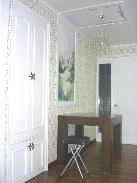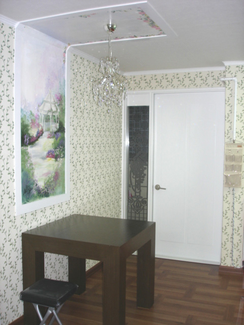 평광 아파트 32평 주방 운영자 (219.♡.4.250) 30평형대 0 4758 2006.02.01 14:26 주방에 몰딩으로 액자를 만들고 그 안에 그림을 넣었습니다. 식탁등은 은색 비즈등으로 달아 불을 켜 놓으면 더욱 예쁘답니다.