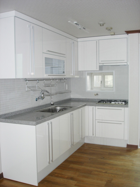 경산시 옥산동 평광신화아파트 23평 싱크대 운영자 (218.♡.118.31) 20평형대 0 4566 2005.09.27 10:25 23 평 아파트 주방인데 상당히 넓어 보이죠! 화이트 문짝에 회색 모자이크 타일. 그레이 돌상판까지 너무 깔끔하고 환해 보인답니다.