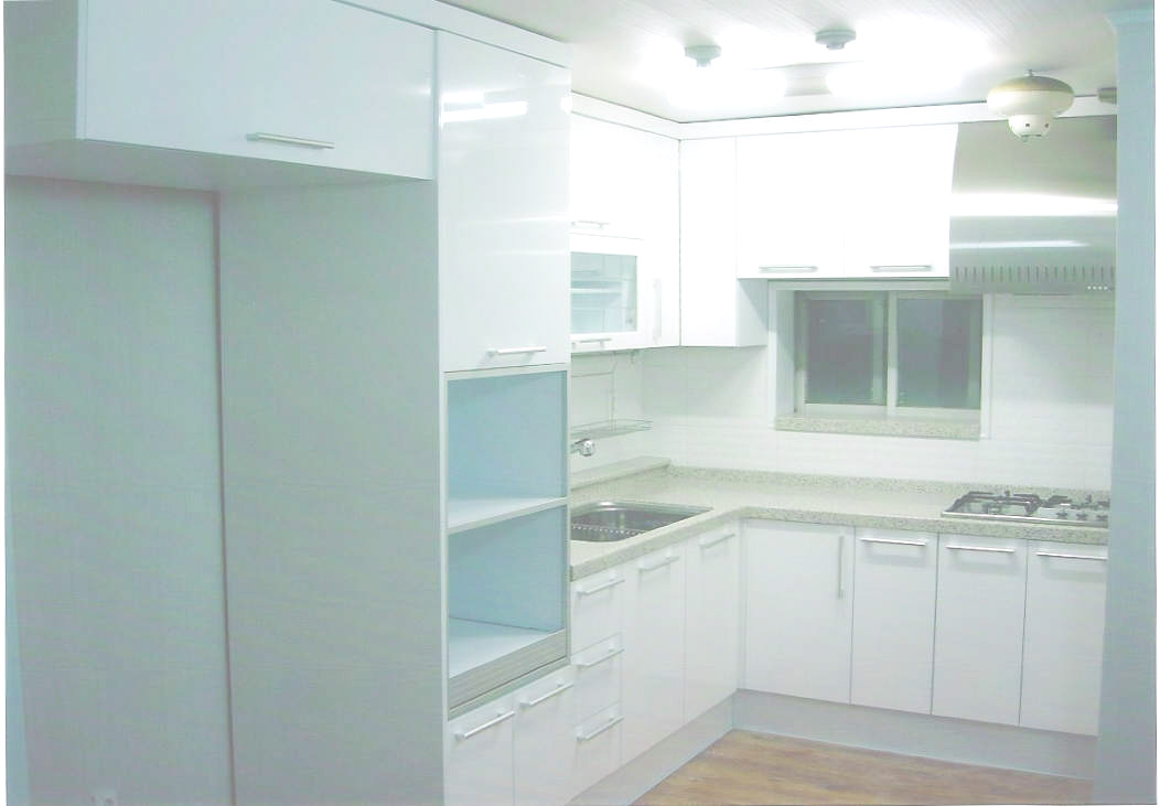 화이트가 역시 강세입니다. 쿡탑과 키큰장으로 수납을 해결 했습니다.