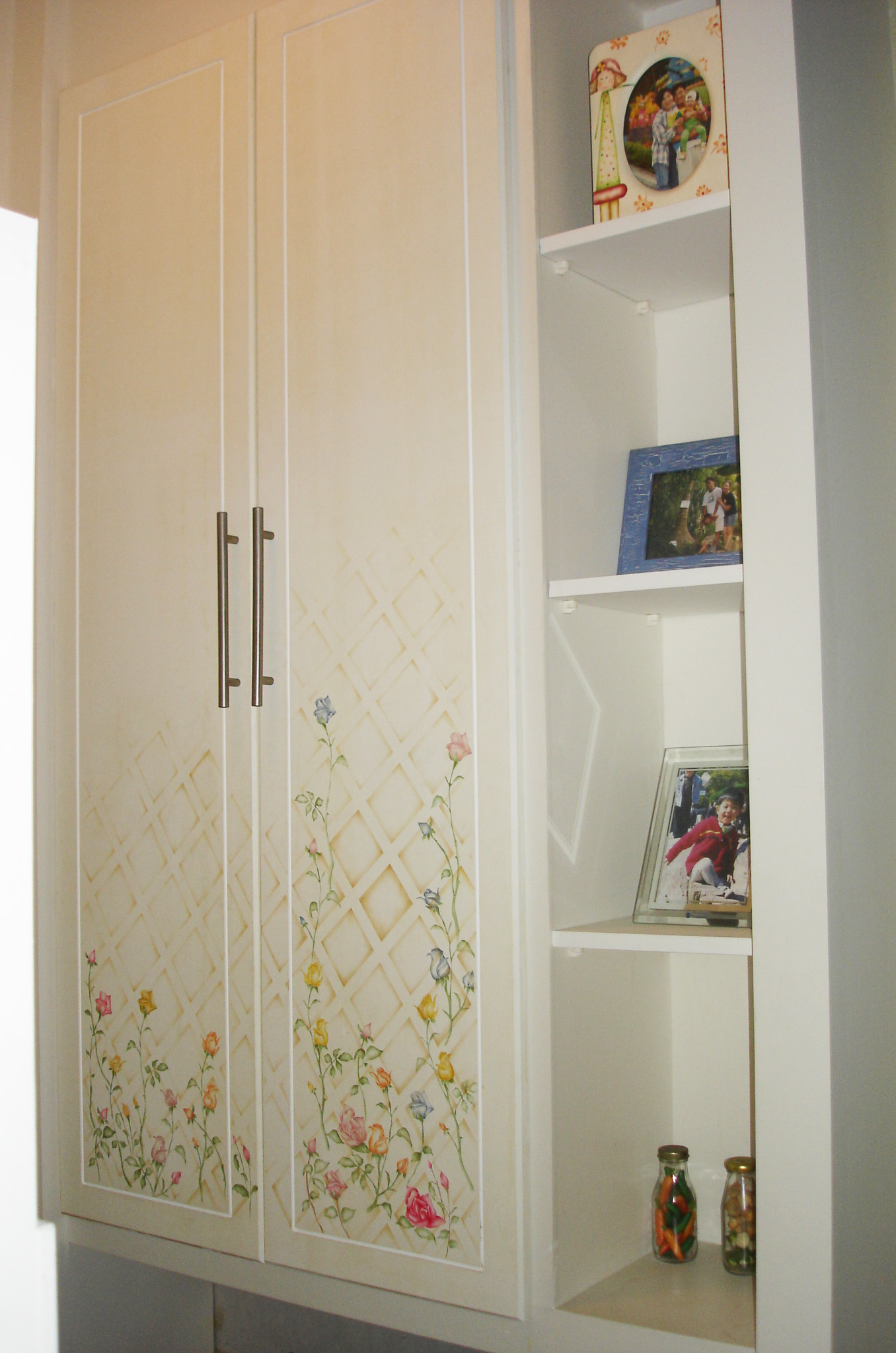 신발장을 짜넣고 거기에 스텐실로 장미 화단을 만들었습니다.