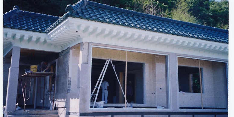 지붕을 잍부 기와로 마감하고 외벽은 돌로 처리 했습니다.