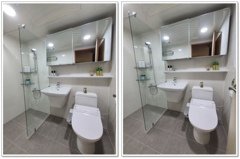 욕조 철거전 // 욕조 철거후 샤워 파티션 시공후