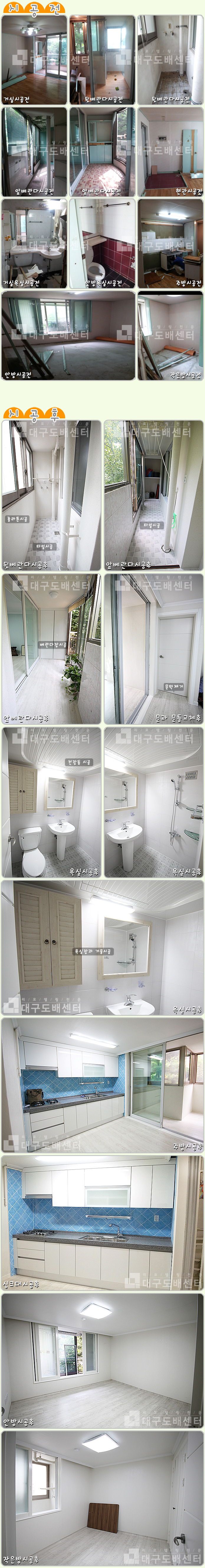 경산시 중산동 태왕한라아파트 110동 72㎡ (22평) 리모델링공사 운영자 (119.♡.83.75) 20평형대 0 4861 2013.09.01 03:43 리모델링 공사 후 스케치입니다.------------------------------------------------------------------------실크도배, 바닥공사, 욕실공사, 조명, 스위치콘센트교체, 싱크대, 신발장, 베란다장, 몰딩공사, 문턱제거, 문과 문틀교체, 현관타일, 앞뒤베란다에 졸라톤시공 및 타일시공, 디지털키 교체, 롤스크린시공 등을 했습니다.