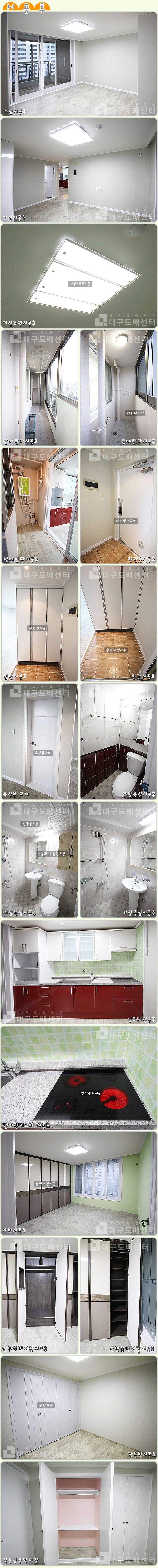경산시 중산동 태왕한라아파트 110동 72㎡ (22평) 리모델링공사 운영자 (112.♡.75.242) 20평형대 0 5461 2015.03.06 20:15 리모델링 공사 후 스케치입니다.----------------------------------------------------------------------------------실크도배, 장판공사, 거실욕실 및 안방욕실부분공사, 싱크대 상판교체 및 전기렌지교체, 싱크타일공사등을 했습니다. 전체몰딩 시공, 안방붙박이장(한샘)을 시공하였고, 현관 신발장, 욕실문교체기타 조명공사와 현관의 디지털키, 현관타일공사등을 했습니다.
