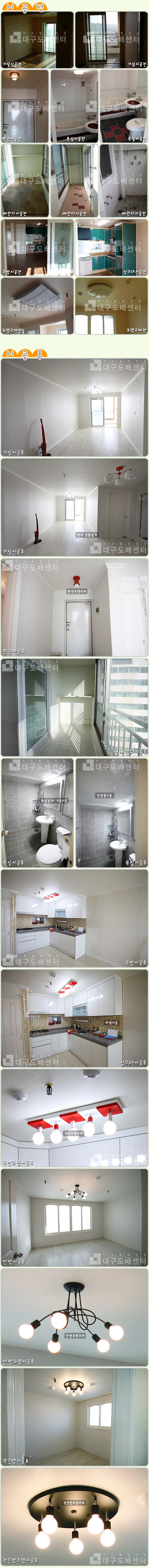 경산시 진량읍 윤성3차아파트 101동 79㎡(24평) 리모델링공사 운영자 (203.♡.212.201) 20평형대 0 4860 2015.04.12 18:38 리모델링 공사 후 스케치입니다.------------------------------------------------------------------------------------------거실방과 주방사이 벽과 문틀철거, 실크도배, 장판공사, 욕실공사, 싱크공사, 몰딩, 걸레받이시공, 싱크타일, 조명, 스위치콘센트, 화재감지기교체등을 하였습니다.젊은 여성분의 첫 독립으로 집을 구입했습니다.혼자서 사는 집이라 본인의 취향에 맞게 고치고좋아하시는 강아지랑 행복하게 사신다고 합니다. ^^