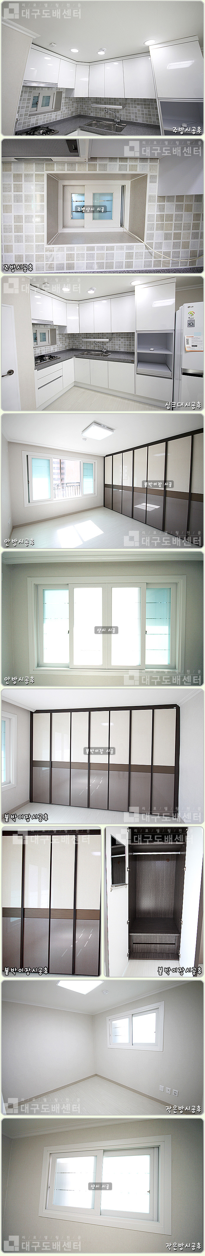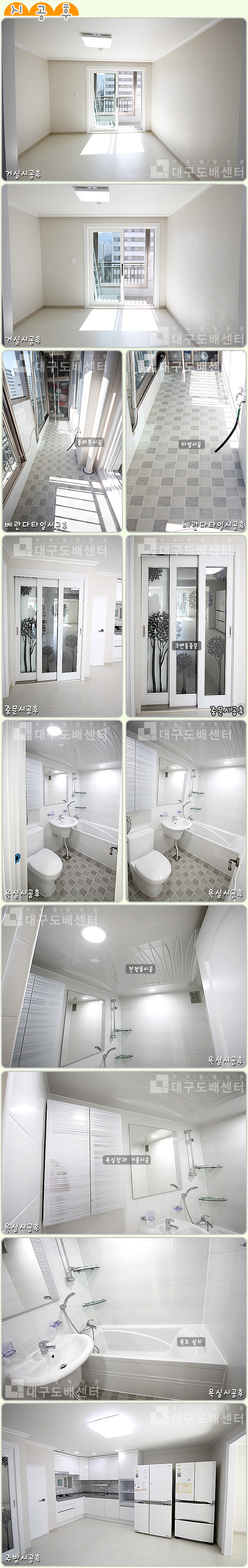 대구시 수성구 신매동 창신신화대백아파트 202동 82.64㎡ (25평) 리모델링공사 운영자 (125.♡.221.126) 20평형대 0 4992 2015.07.26 15:29 리모델링 공사 후 스케치입니다.------------------------------------------------------------------------------------------실크도배, 강마루시공, 문턱제거, 욕실공사,조명 및 스위치콘센트,디지털키시공, 싱크대, 신발장, 한샘붙박이장, 도색, 베란다졸라톤, 몰딩공사, 샷시공사,3연동중문, 싱크타일, 현관타일, 베란다타일공사, 세탁기돋음공사등을 했습니다.