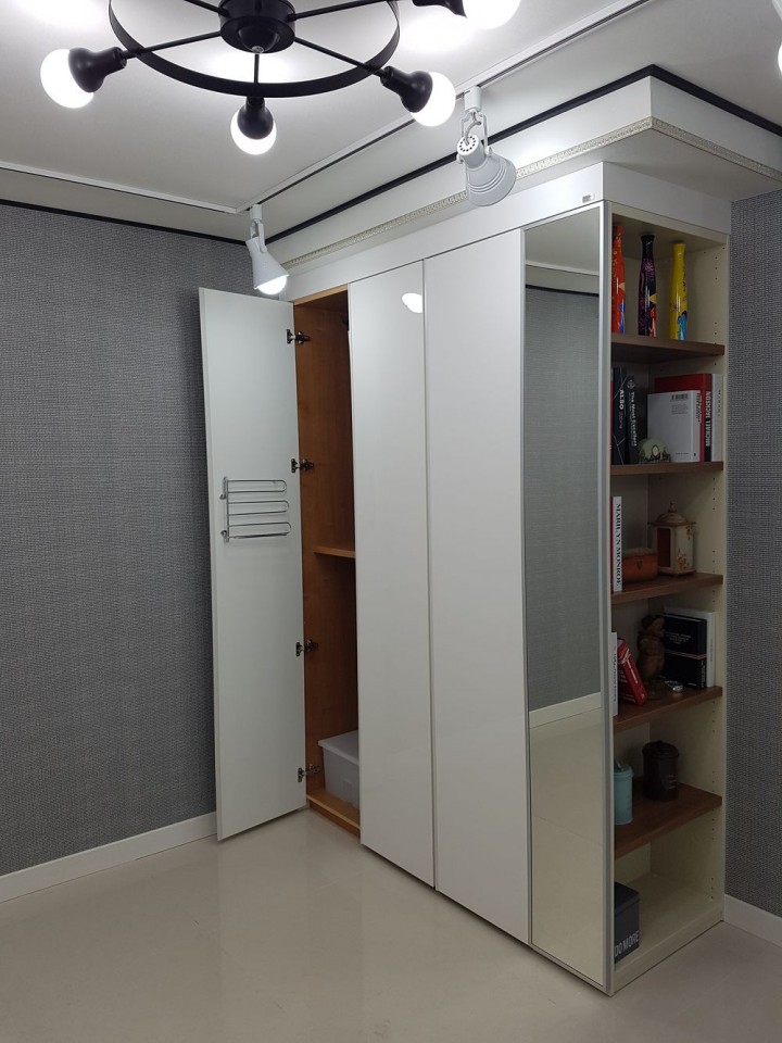 한샘ik 전문매장 "대구도배센터 showroom" - 붙박이장 & 도어 운영자 (222.♡.124.31) 공지 0 4007 2016.04.15 17:33 안방과 작은방등에 많이 하시는 붙박이장 문들을 직접 보실수 있게전시되어 있습니다붙박이장도어 안방에 많이 설치하시는 펄클래식 한샘 붙박이장 입니다.작은방 특히 학생방에 많이 설치하는 한샘 화이트채널 붙박이장입니다.붙박이장 끝에는 거울이 달려 있어 학생들이 옷을 입은 후에도 본인의 상태를 확인할수 있습니다코너에는 선반이 붙어있어 책과 용품등을 수납할 수 있습니다