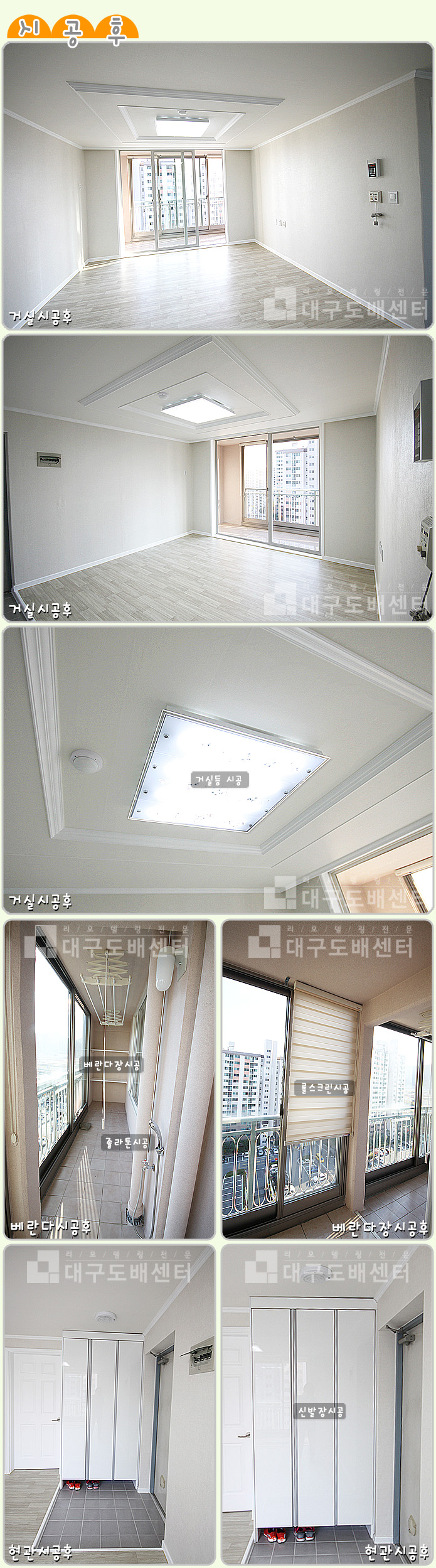 경산시 중산동 경남신성아파트 79㎡(24평) 리모델링공사 ① - 거실, 베란다 운영자 (203.♡.208.113) 20평형대 0 4664 2016.07.31 08:12 거실, 현관, 베란다의 리모델링 공사 후 스케치입니다.------------------------------------------------------------공사내용은 실크도배, 장판 교체, 현관 신발장시공, 도색공사, 베란다 졸라톤시공 및롤스크린, 베란다장 시공하였고 거실등 시공 및 조명, 스위치콘센트 교체등을 했습니다