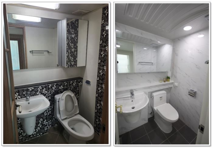 대구시 수성구 시지월드메르디앙 101동 81㎡(24평) 안방 욕실리모델링 운영자 (42.♡.194.64) 20평형대 0 631 2021.03.11 12:22 안녕하세요? 대구도배센터입니다^^대구시 수성구 시지월드메르디앙 101동 81㎡(24평) 안방 욕실리모델링입니다.천정시공전 // 천정 시공후대림바스플랜 2도어 슬라이드장 시공후대림바스플랜 2도어 슬라이드장욕실 시공전 // 욕실 시공후욕실 시공후대림바스플랜 반다리 세면대 시공후대림바스플랜 샤워겸용수전 시공후욕실 시공전 // 욕실 시공후